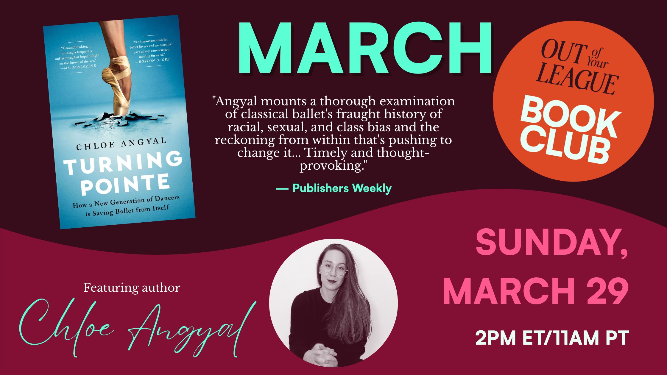 I’m really stoked about this one. We’ll be reading Turning Pointe: How a New Generation of Dancers is Saving Ballet From Itself by Chloe Angyal.