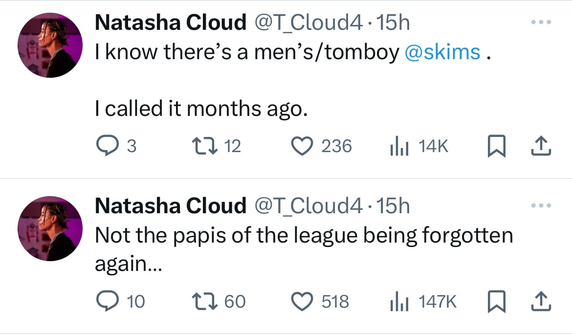 “It’s long past time to celebrate and uplift queer, masculine-of-center aesthetics as desirable,” I wrote in 2022, with words that feel like they could apply to the Skims campaign I’m looking at today. “The players—with their range of gender expressions—make the league what it is, and they deserve to be uplifted and celebrated and marketed for exactly who they are.”