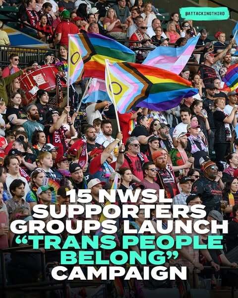In fact, it’s those existing Supporters Groups that have stepped up to insist that the NWSL is a league that stands against transphobia. All 15 team SGs launched the “Trans People Belong” campaign last week, which involves in-stadium displays by supporters and a forthcoming educational component in partnership with Athlete Ally, in addition to selling shirts to benefit the Transgender Law Center. Nowhere in those press releases was Unwell FC mentioned. Even if Cooper wanted her Unwell FC to be involved, how can a league-sponsored SG take part in a campaign that essentially criticizes the league for its inaction?